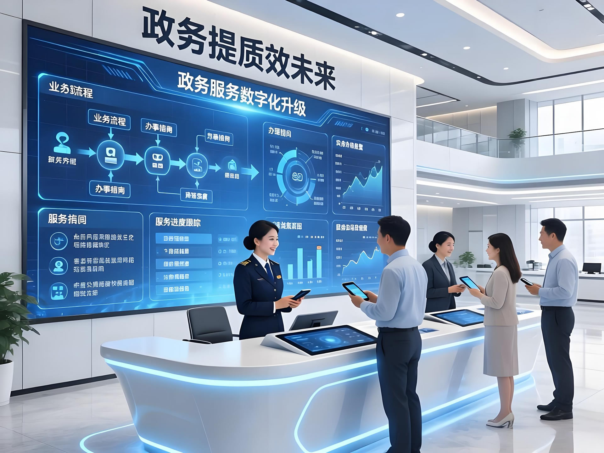 (一)政务大厅核心区域:多屏联动,实现信息全方位传递